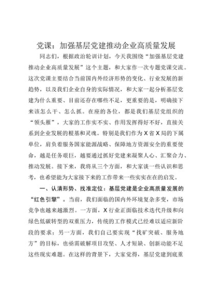 / 【七哥公文】2025年:党课讲稿:加强基层党建 推动企业高质量发展+更多免费公文+VX:QiGeGongWen2024