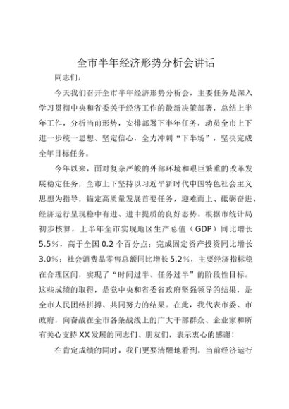/ 【七哥公文】2025年:全市半年经济形势分析会讲话+更多免费公文+VX:QiGeGongWen2024