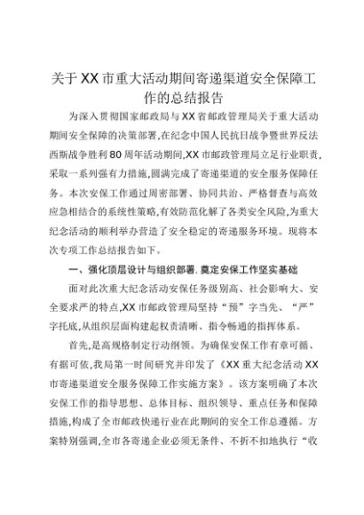 【七哥公文】2025年:关于XX市重大活动期间寄递渠道安全保障工作的总结报告+更多免费公文+VX:QiGeGongWen2024