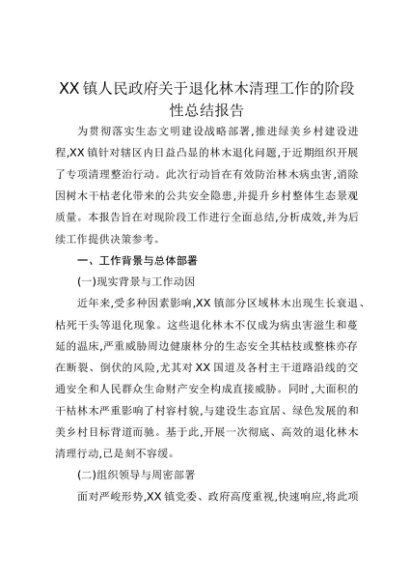 【七哥公文】2025年:XX镇人民政府关于退化林木清理工作的阶段性总结报告+更多免费公文+VX:QiGeGongWen2024