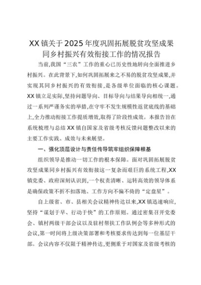 【七哥公文】2025年:XX镇关于2025年度巩固拓展脱贫攻坚成果同乡村振兴有效衔接工作的情况报告+更多免费公文+VX:QiGeGongWen2024