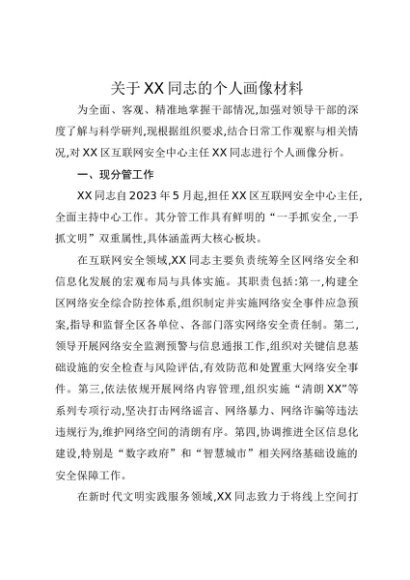 / 【七哥公文】2025年:关于XX同志的个人画像材料2+更多免费公文+VX:QiGeGongWen2024