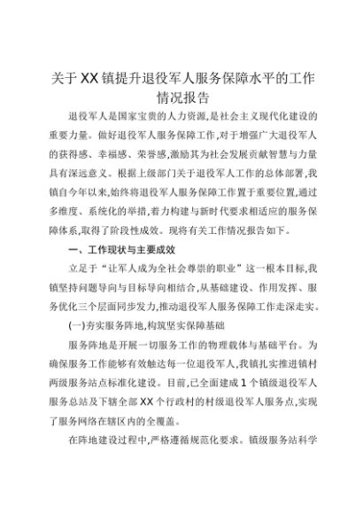 【七哥公文】2025年:关于XX镇提升退役军人服务保障水平的工作情况报告+更多免费公文+VX:QiGeGongWen2024