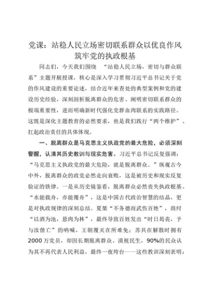 【七哥公文】2025年:党课讲稿:站稳人民立场 密切联系群众 以优良作风筑牢党的执政根基+更多免费公文+VX:QiGeGongWen2024