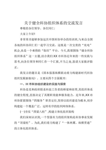 / 【七哥公文】2025年:关于健全科协组织体系的交流发言+更多免费公文+VX:QiGeGongWen2024