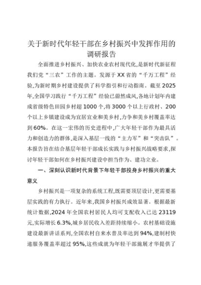 【七哥公文】2025年:关于新时代年轻干部在乡村振兴中发挥作用的调研报告+更多免费公文+VX:QiGeGongWen2024
