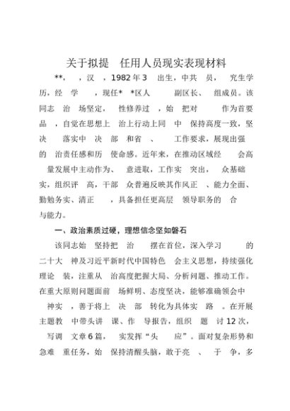 / 【七哥公文】2025年:关于拟提拔任用人员现实表现材料+更多免费公文+VX:QiGeGongWen2024