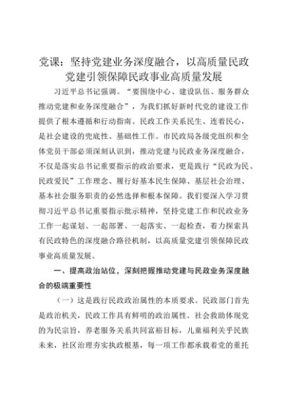 【七哥公文】2025年:党课讲稿:坚持党建业务深度融合,以高质量民政党建引领保障民政事业高质量发展+更多免费公文+VX:QiGeGongWen2024