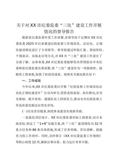 【七哥公文】2025年:关于对XX市纪委监委“三化”建设工作开展情况的督导报告+更多免费公文+VX:QiGeGongWen2024