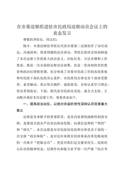 / 【七哥公文】2025年:在市委巡察组进驻市民政局巡察动员会议上的表态发言+更多免费公文+VX:QiGeGongWen2024