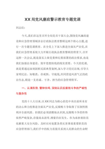 / 【七哥公文】2025年:XX局党风廉政警示教育专题党课讲稿+更多免费公文+VX:QiGeGongWen2024