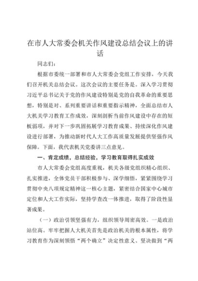 / 【七哥公文】2025年:在市人大常委会机关作风建设总结会议上的讲话+更多免费公文+VX:QiGeGongWen2024