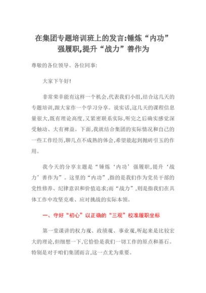 【七哥公文】2025年:在集团专题培训班上的发言:锤炼“内功”强履职,提升“战力”善作为+更多免费公文+VX:QiGeGongWen2024