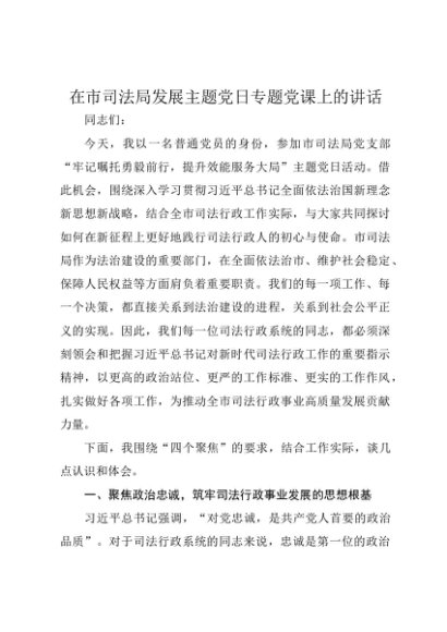 / 【七哥公文】2025年:在市司法局发展主题党日专题党课上的讲话+更多免费公文+VX:QiGeGongWen2024