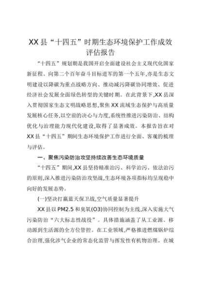 【七哥公文】2025年:XX县“十四五”时期生态环境保护工作成效评估报告+更多免费公文+VX:QiGeGongWen2024