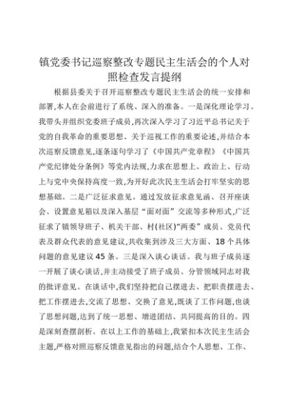 【七哥公文】2025年:镇党委书记巡察整改专题民主生活会的个人对照检查发言提纲+更多免费公文+VX:QiGeGongWen2024