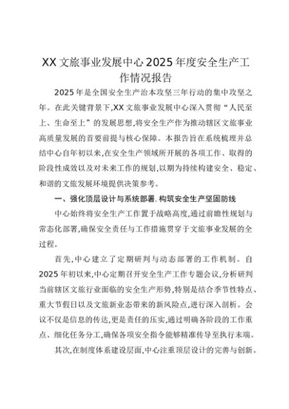 【七哥公文】2025年:XX文旅事业发展中心2025年度安全生产工作情况报告+更多免费公文+VX:QiGeGongWen2024