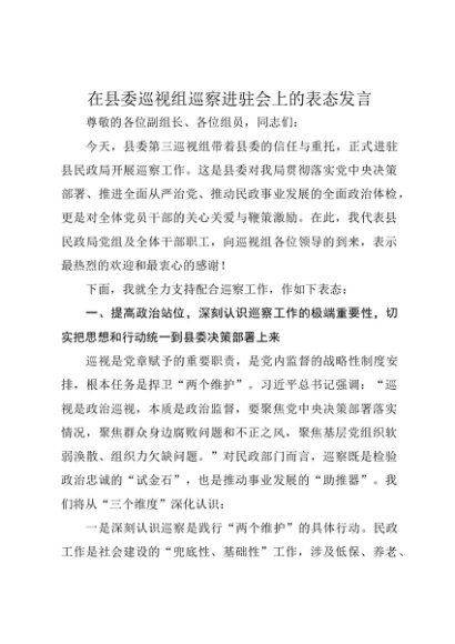 / 【七哥公文】2025年:在县委巡视组巡察进驻会上的表态发言+更多免费公文+VX:QiGeGongWen2024