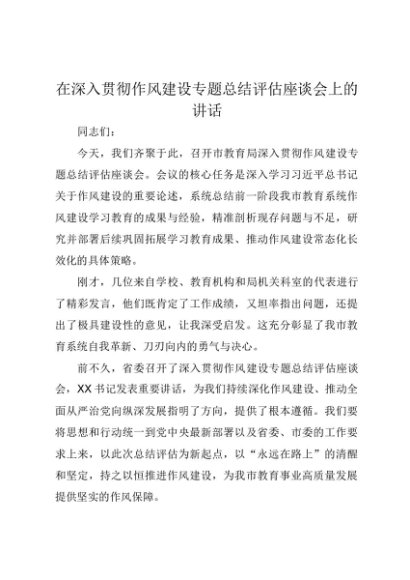 / 【七哥公文】2025年:在深入贯彻作风建设专题总结评估座谈会上的讲话+更多免费公文+VX:QiGeGongWen2024