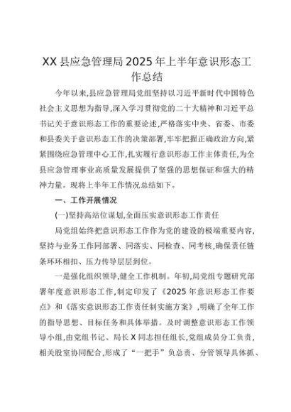 【七哥公文】2025年:XX县应急管理局2025年上半年意识形态工作总结+更多免费公文+VX:QiGeGongWen2024