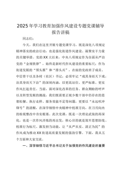 【七哥公文】2025年:2025年学习教育加强作风建设专题党课辅导报告讲稿+更多免费公文+VX:QiGeGongWen2024