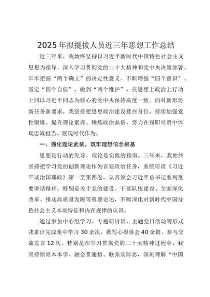 / 【七哥公文】2025年:2025年拟提拔人员近三年思想工作总结+更多免费公文+VX:QiGeGongWen2024