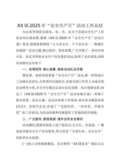 / 【七哥公文】2025年:XX镇2025年“安全生产月”活动工作总结+更多免费公文+VX:QiGeGongWen2024