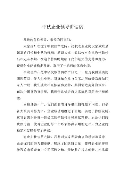 【七哥公文】2025年:中秋企业领导讲话稿+更多免费公文+VX:QiGeGongWen2024