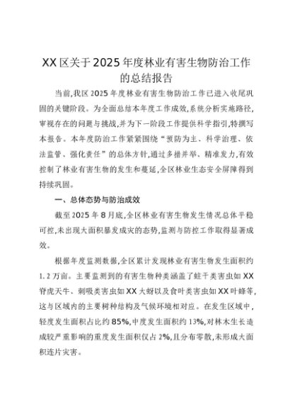 【七哥公文】2025年:XX区关于2025年度林业有害生物防治工作的总结报告+更多免费公文+VX:QiGeGongWen2024