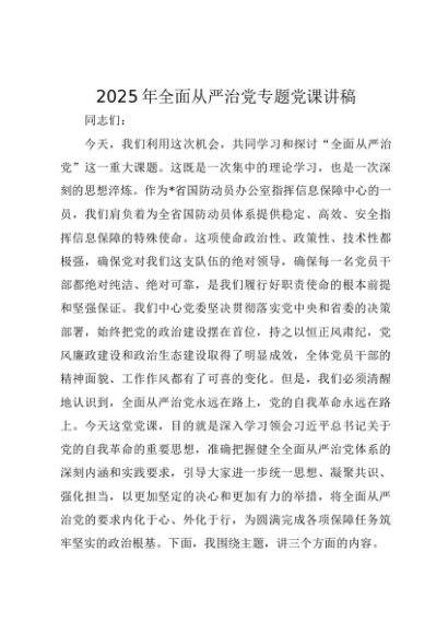 / 【七哥公文】2025年:2025年全面从严治党专题党课讲稿+更多免费公文+VX:QiGeGongWen2024