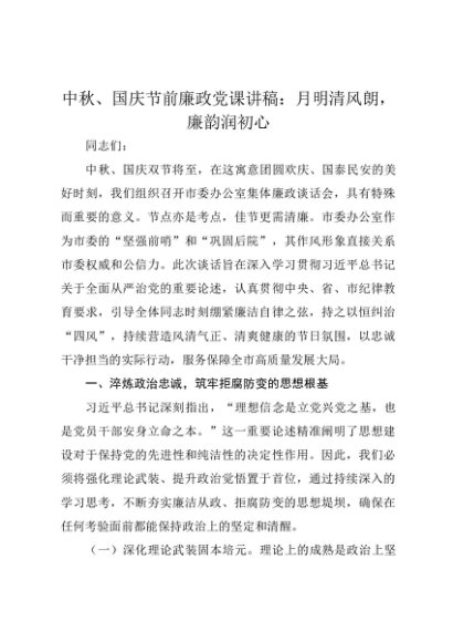 【七哥公文】2025年:中秋、国庆节前廉政党课讲稿:月明清风朗,廉韵润初心+更多免费公文+VX:QiGeGongWen2024
