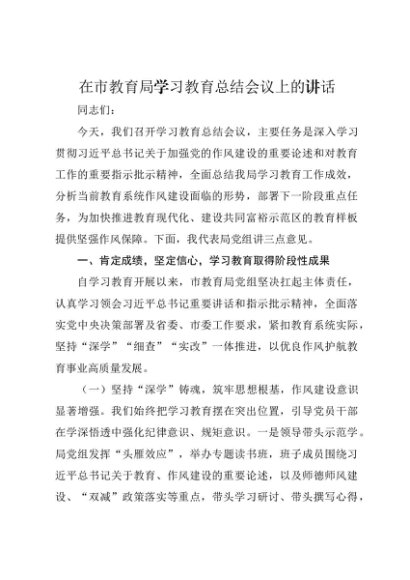 / 【七哥公文】2025年:在市教育局学习教育总结会议上的讲话+更多免费公文+VX:QiGeGongWen2024