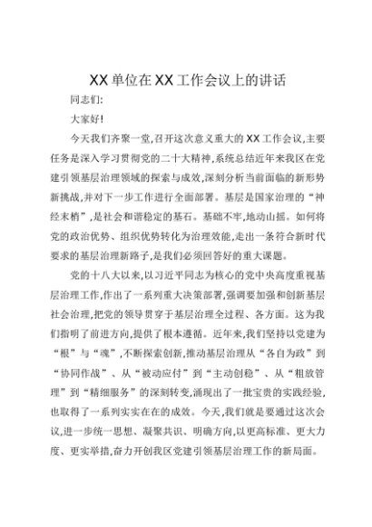 / 【七哥公文】2025年:XX单位在XX工作会议上的讲话+更多免费公文+VX:QiGeGongWen2024