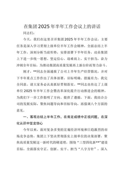 / 【七哥公文】2025年:在集团2025年半年工作会议上的讲话+更多免费公文+VX:QiGeGongWen2024