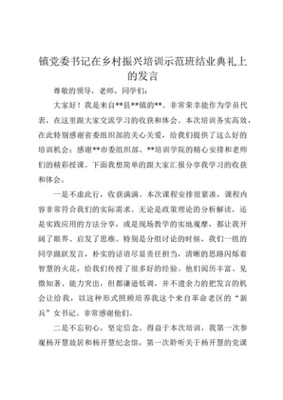 / 【七哥公文】2025年:镇党委书记在乡村振兴培训示范班结业典礼上的发言+更多免费公文+VX:QiGeGongWen2024