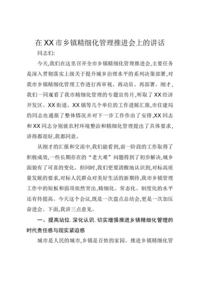 / 【七哥公文】2025年:在XX市乡镇精细化管理推进会上的讲话+更多免费公文+VX:QiGeGongWen2024