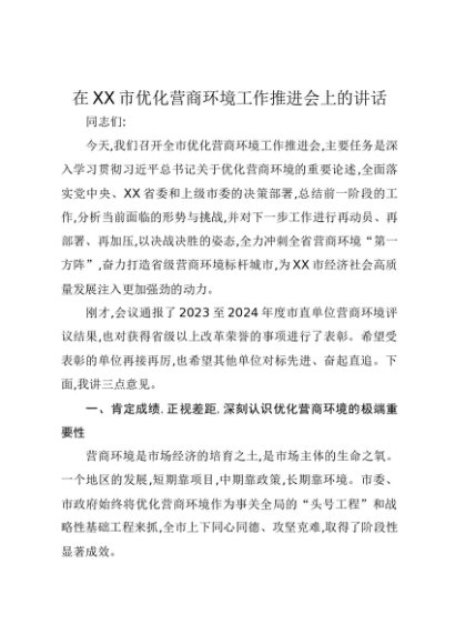 / 【七哥公文】2025年:在XX市优化营商环境工作推进会上的讲话+更多免费公文+VX:QiGeGongWen2024