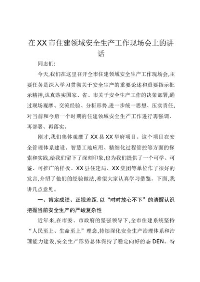 / 【七哥公文】2025年:在XX市住建领域安全生产工作现场会上的讲话+更多免费公文+VX:QiGeGongWen2024