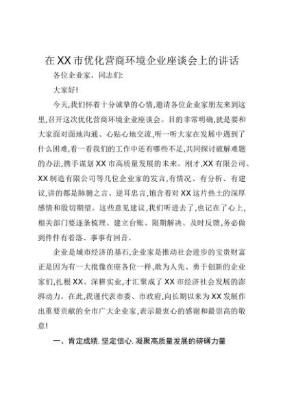 / 【七哥公文】2025年:在XX市优化营商环境企业座谈会上的讲话+更多免费公文+VX:QiGeGongWen2024