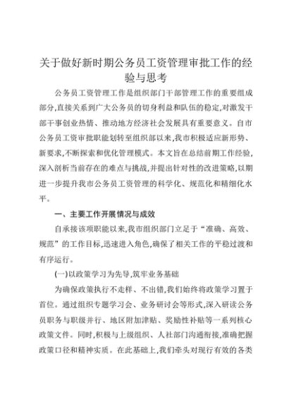 【七哥公文】2025年:调研报告:关于做好新时期公务员工资管理审批工作的经验与思考+更多免费公文+VX:QiGeGongWen2024