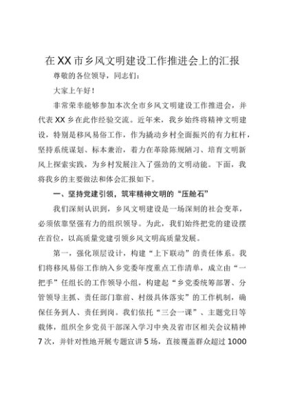 / 【七哥公文】2025年:在XX市乡风文明建设工作推进会上的汇报+更多免费公文+VX:QiGeGongWen2024
