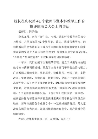 【七哥公文】2025年:校长在庆祝第41个教师节暨本科教学工作合格评估动员大会上的讲话+更多免费公文+VX:QiGeGongWen2024