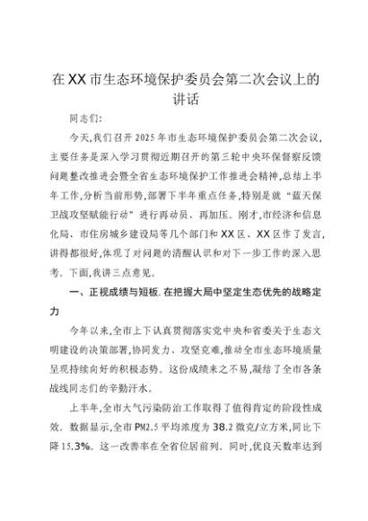 / 【七哥公文】2025年:在XX市生态环境保护委员会第二次会议上的讲话+更多免费公文+VX:QiGeGongWen2024