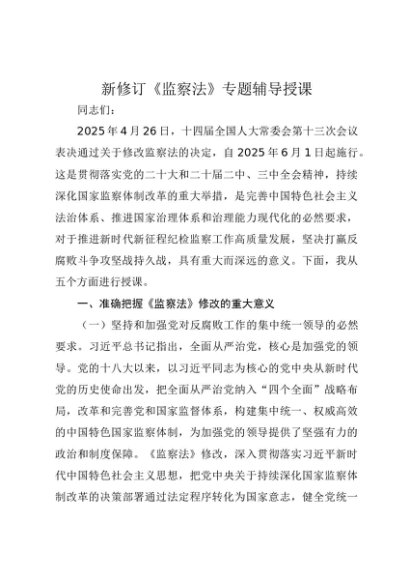 / 【七哥公文】2025年:新修订《监察法》专题辅导授课党课讲稿+更多免费公文+VX:QiGeGongWen2024