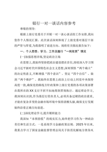 【七哥公文】2025年:银行一对一谈话内容参考+更多免费公文+VX:QiGeGongWen2024