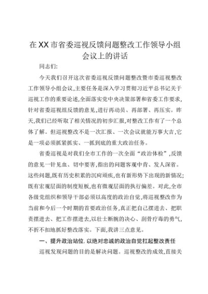 【七哥公文】2025年:在XX市省委巡视反馈问题整改工作领导小组会议上的讲话+更多免费公文+VX:QiGeGongWen2024