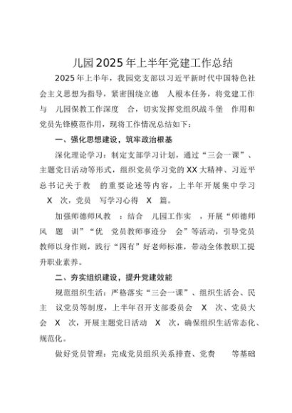 / 【七哥公文】2025年:幼儿园2025年上半年党建工作总结+更多免费公文+VX:QiGeGongWen2024
