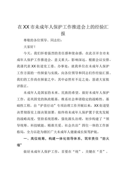 / 【七哥公文】2025年:在XX市未成年人保护工作推进会上的经验汇报+更多免费公文+VX:QiGeGongWen2024
