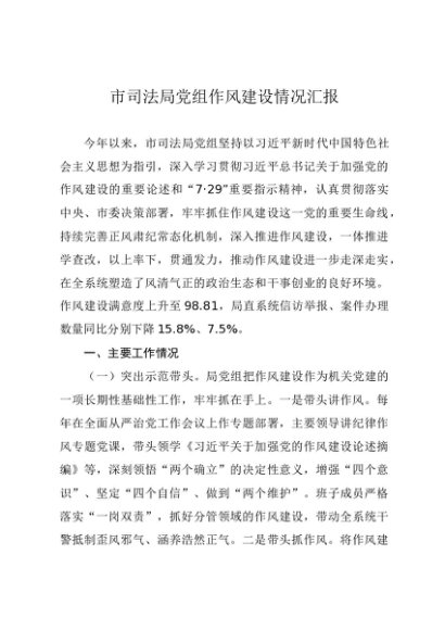 【七哥公文】2025年:市司法局党组作风建设情况汇报+更多免费公文+VX:QiGeGongWen2024