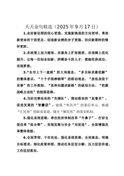 / 【七哥公文】2025年:天天金句精选(2025年9月17日)+更多免费公文+VX:QiGeGongWen2024
